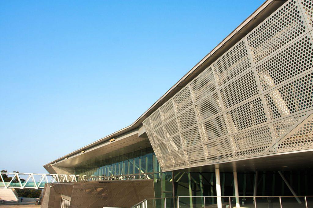 園區依基地所在的丘陵起伏地形設計,規劃有戶外空間、主展館區及附屬設施,以廣場及環繞基地四周的步道動線將區域作和緩的連結,同時將建築物視為整體景觀的一部分,園區等相關設施被水與綠景紋路所構成的人工山丘所包覆,創造出梯田景觀的意象。