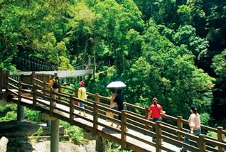 以生態工法建造的枕木碎石步道,可讓遊客安全貼近溪流賞景,一睹神仙谷美麗、神秘的丰采,而富有泰雅族風味的吊橋也已重建;優美的山谷溪流景色,隔絕了城市的盛夏燥熱,呼吸著空氣中飽滿的芬多精與濕潤水氣,聽水聲淙淙,拂山風徐徐,還有什麼比這更享受的呢!